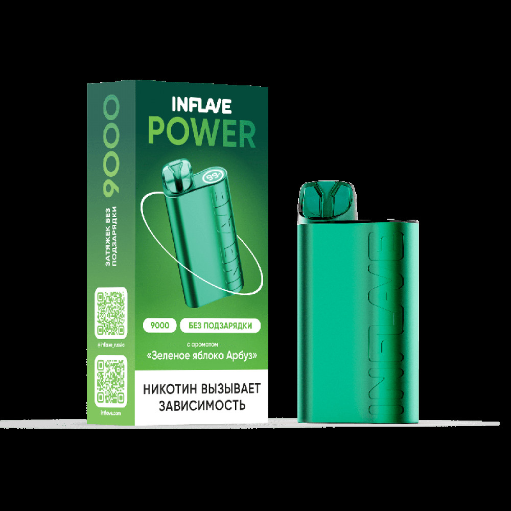 Электронная сигарета INFLAVE POWER 9000 затяжек Зеленое Яблоко Арбуз - купить в Шадринске